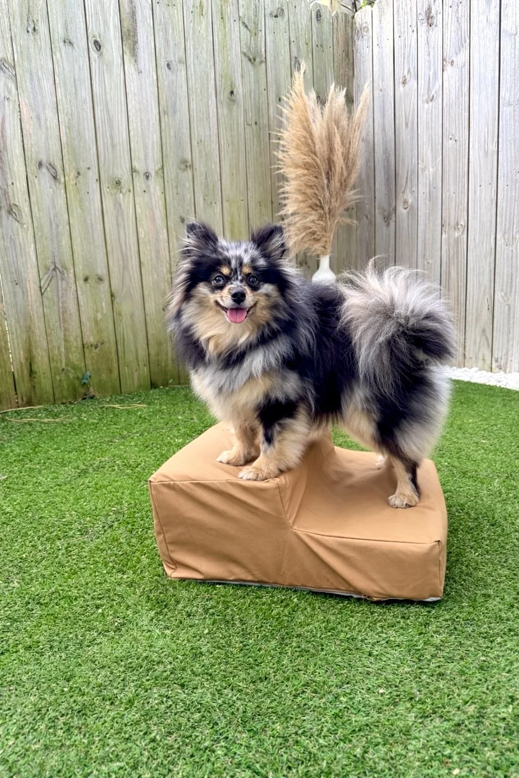 Canela is pure sunshine in a tiny, fluffy package. She’s happy, expressive and always ready to greet you with a smile and wagging tail. Her joyful personality lights up any room and she thrives on interaction, cuddles and being part of the action. Canela is playful, affectionate, and full of life she brings warmth and happiness wherever she goes. Embark DNA and health tested • AKC registered.